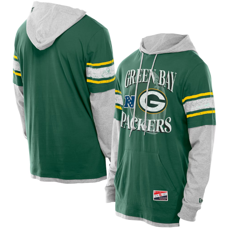 Green Bay Packers Twofer Layered Long Sleeve Hoodie T-Shirt - Green