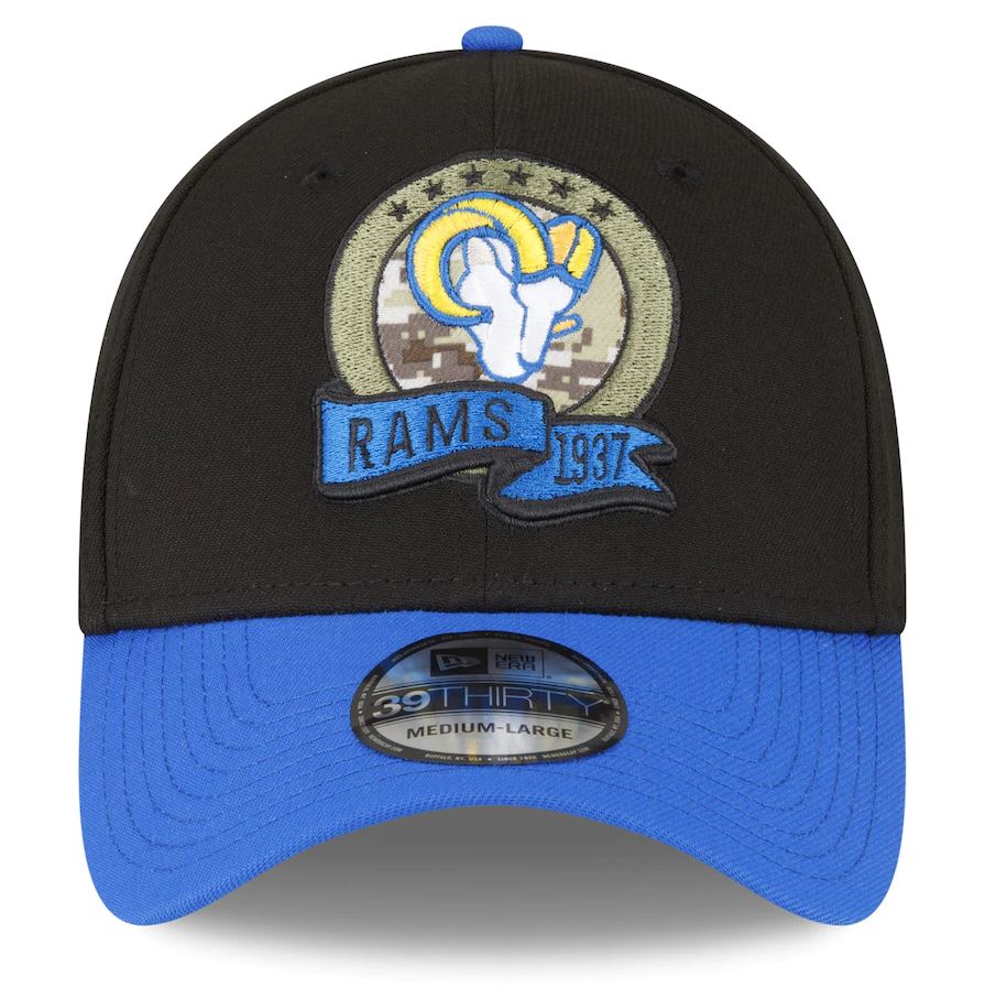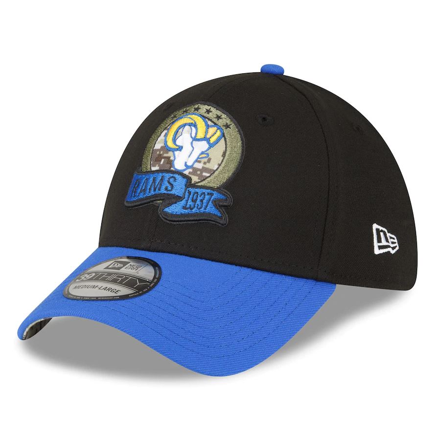 Los Angeles Rams New Era 39THIRTY 2022 Salute To Service Black/Blue Flex Hat