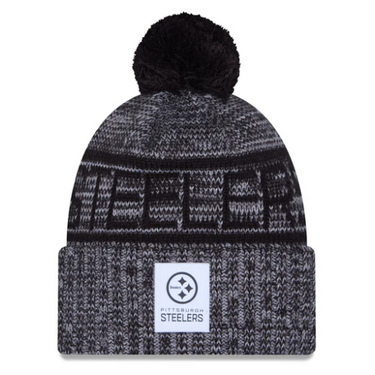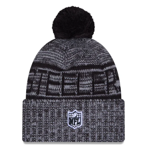 Pittsburgh Steelers New Era 2025 Sideline Cold Weather Cuffed Knit Hat with Pom - Gray/Black
