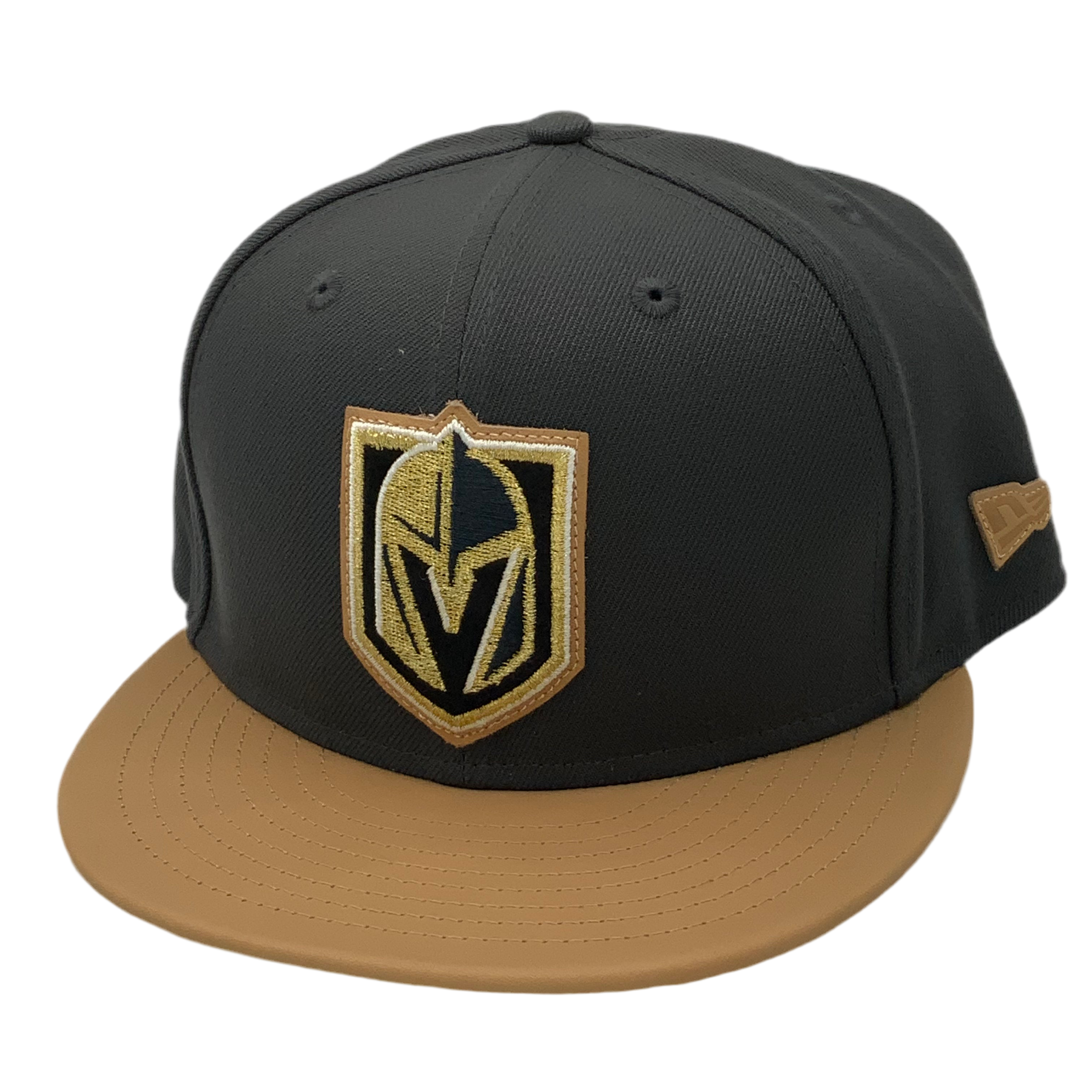 Vegas Golden Knights Leather New Era 59FIFTY Fitted Hat - Gray/Tan