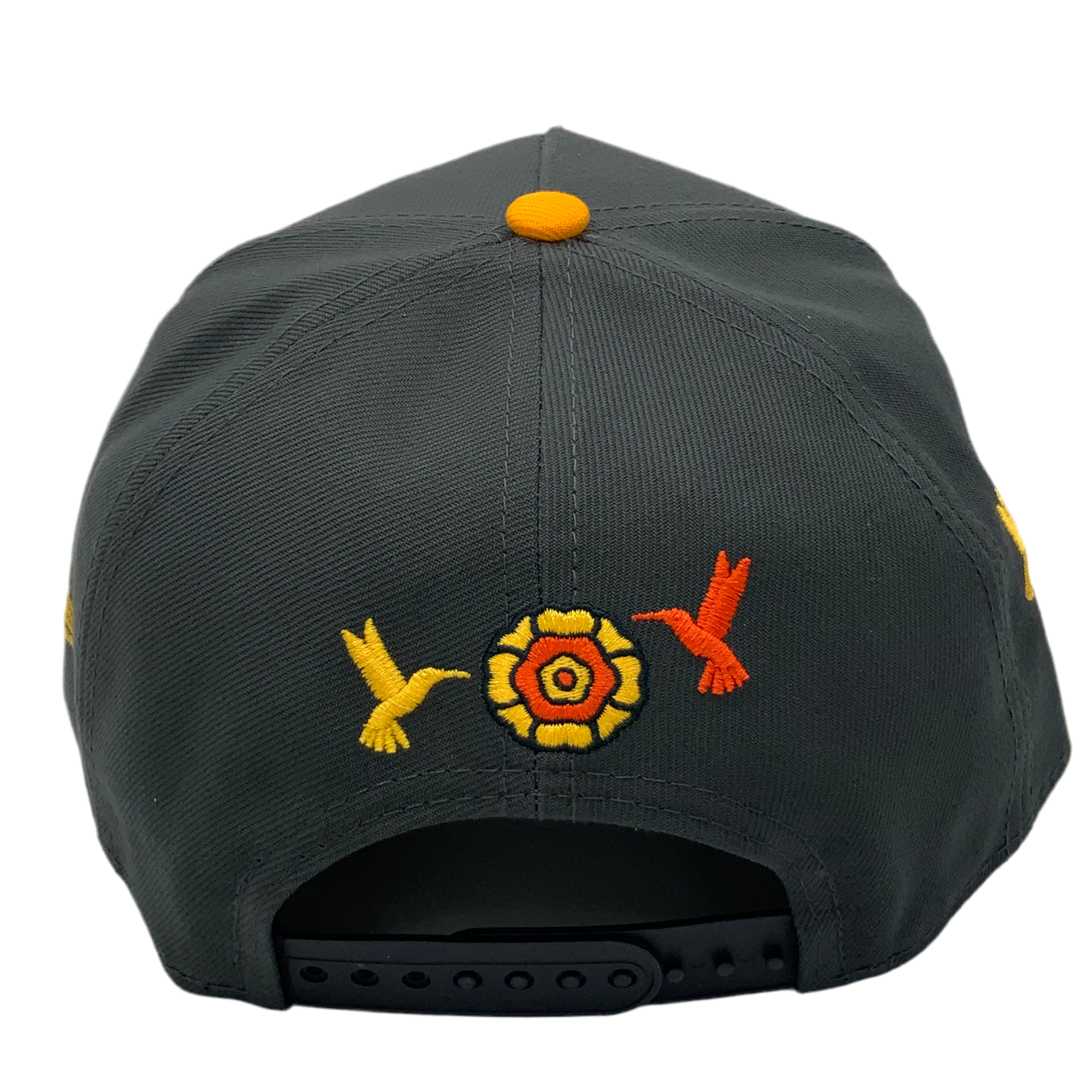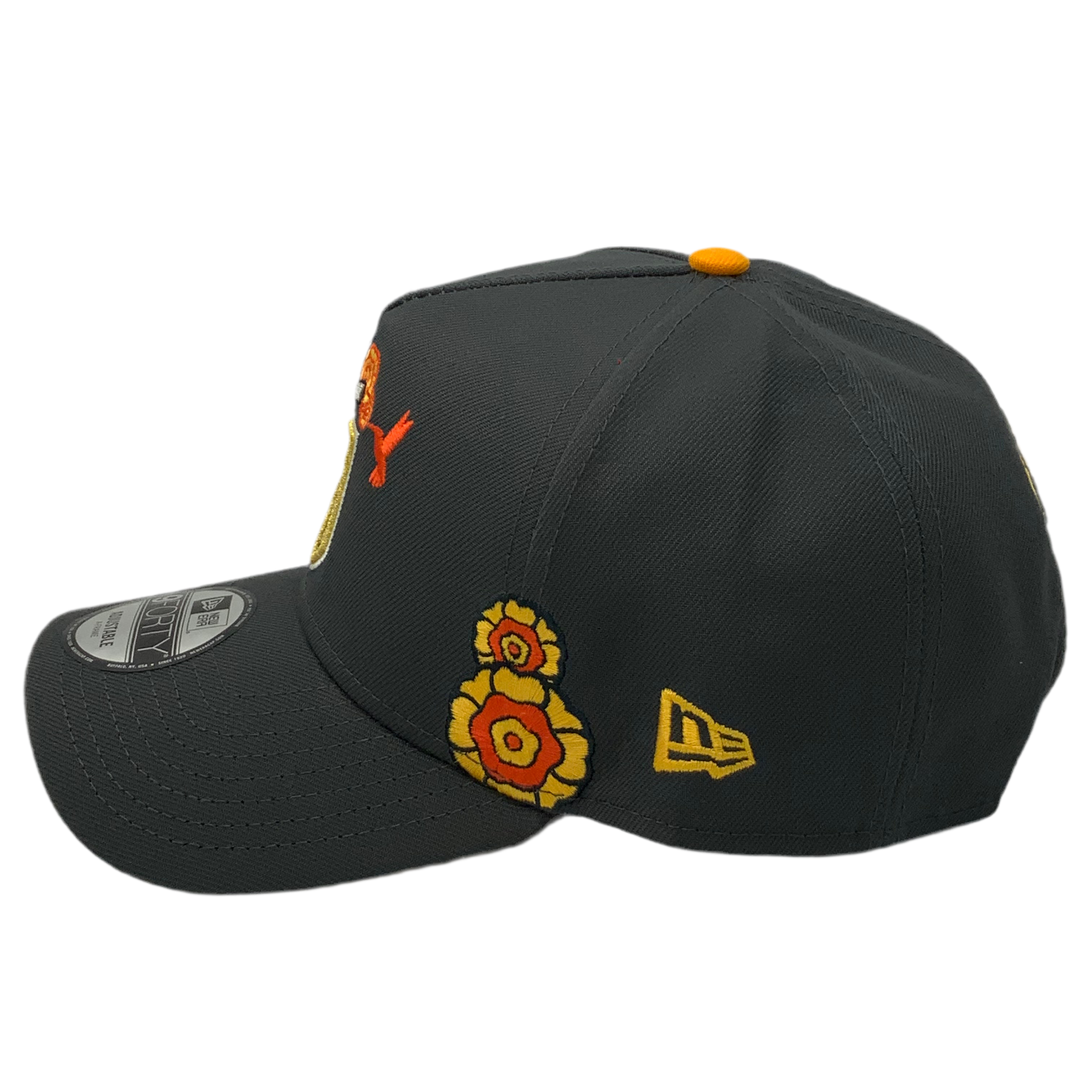 Embrace the vibrant spirit of Dia de Los Muertos with the Day of the Dead Roses 9FORTY A-Frame Snapback. This stylish hat features striking embroidered Marigolds on the front panels, along with the team logo. The adjustable snapback closure ensures a comfortable fit, making it a perfect accessory for any outing or celebration. Elevate your look while honoring tradition with this unique and meaningful headwear.