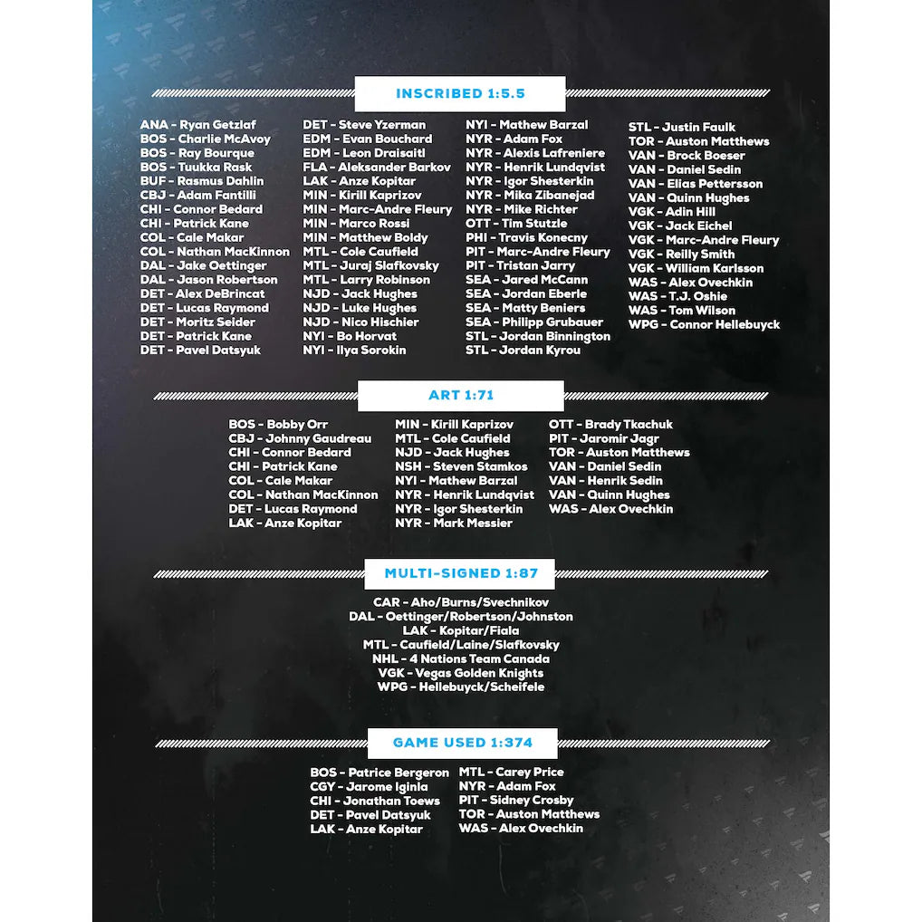 The Only Officially Licensed Mystery Experience Introduces: 2025 UNDER WRAPS NHL JERSEYS — a premium mystery box experience featuring authentic, sealed, and randomized autographed jerseys across 5 unique tiers. This release boasts a checklist packed with current stars, rising rookies and NHL legends, making it one of the most exciting Under Wraps editions to date. Featuring authenticated GAME USED jerseys signed by Alexander Ovechkin, Sydney Crosby, Auston Matthews and more!