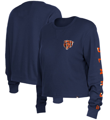 Chicago Bears New Era Women's Sport Night Thermal Long Sleeve Cropped T-Shirt - Black