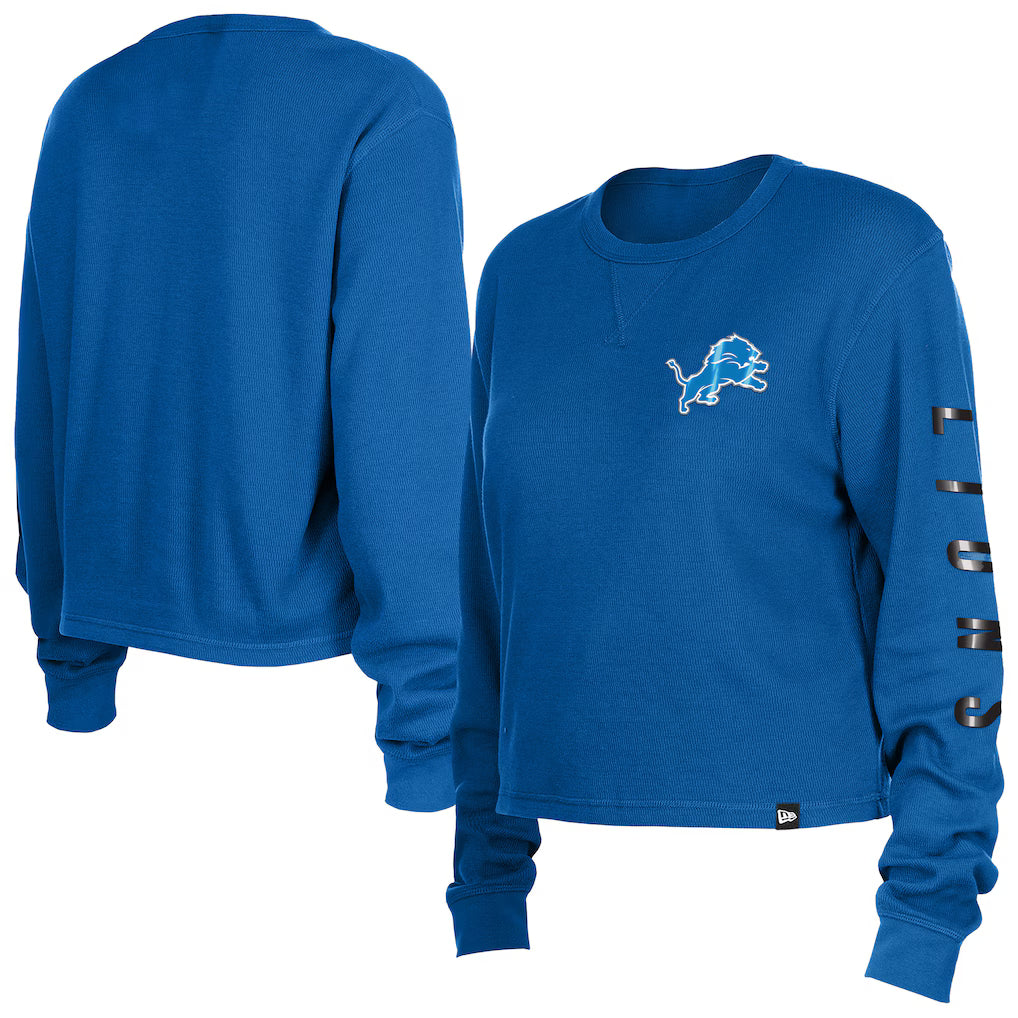 Detroit Lions New Era Women's Sport Night Thermal Long Sleeve Cropped T-Shirt