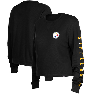 Pittsburgh Steelers New Era Women's Sport Night Thermal Long Sleeve Cropped T-Shirt - Black