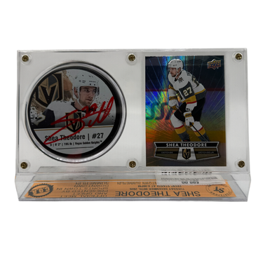 Shea Theodore Vegas Golden Knights Autographed Hockey Puck and Trading Card Case - White Jersey Puck and Card