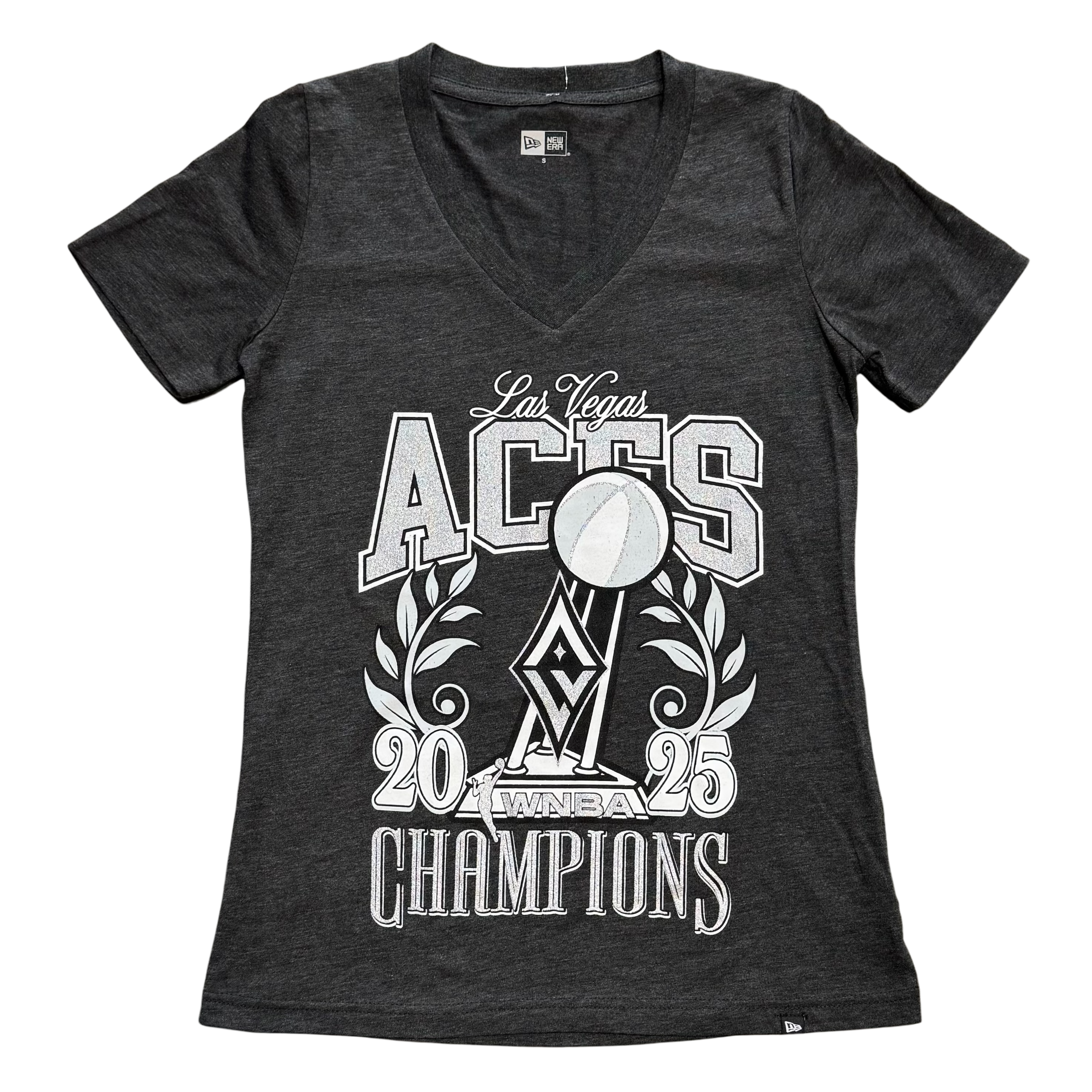 Las Vegas Aces Women's New Era 2025 WNBA Finals Champions Boxy Vintage V-Neck T-Shirt - Black