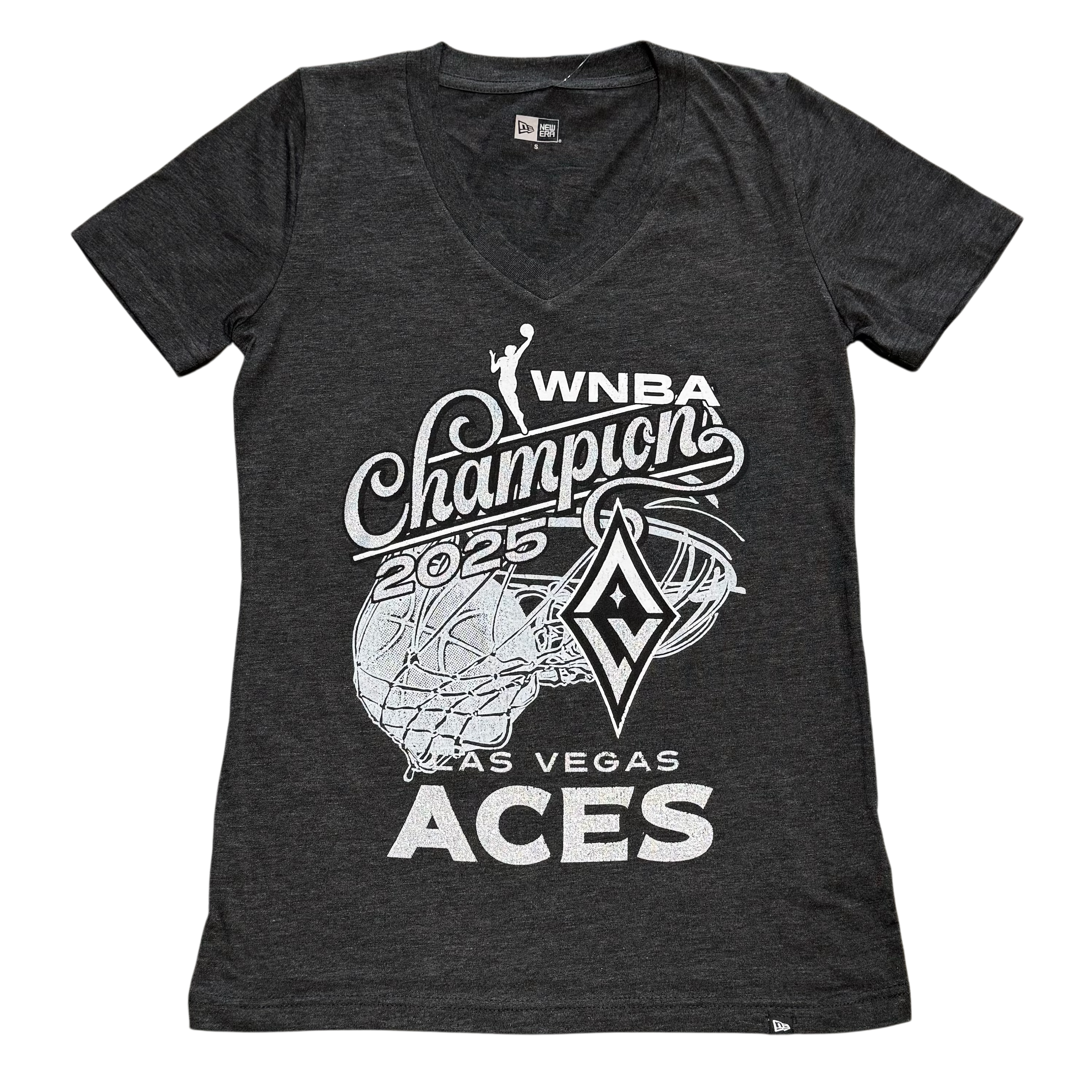 Las Vegas Aces New Era 2025 WNBA Finals Champions Hoop Dreams Womens V-Neck T-Shirt - Black