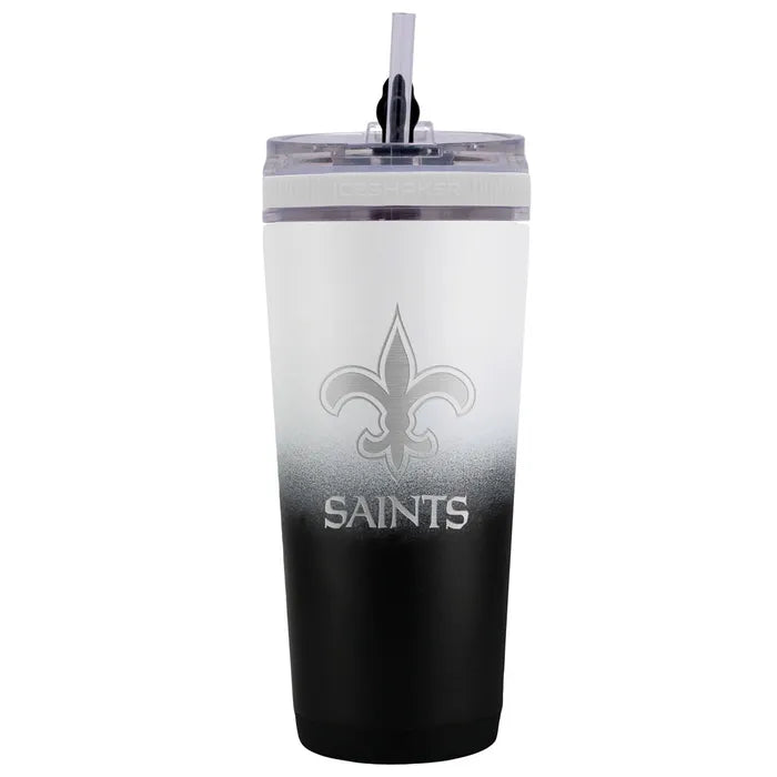 New Orleans Saints 26oz Stainless Steel Ice Shaker Bottle - Ombre Black/White