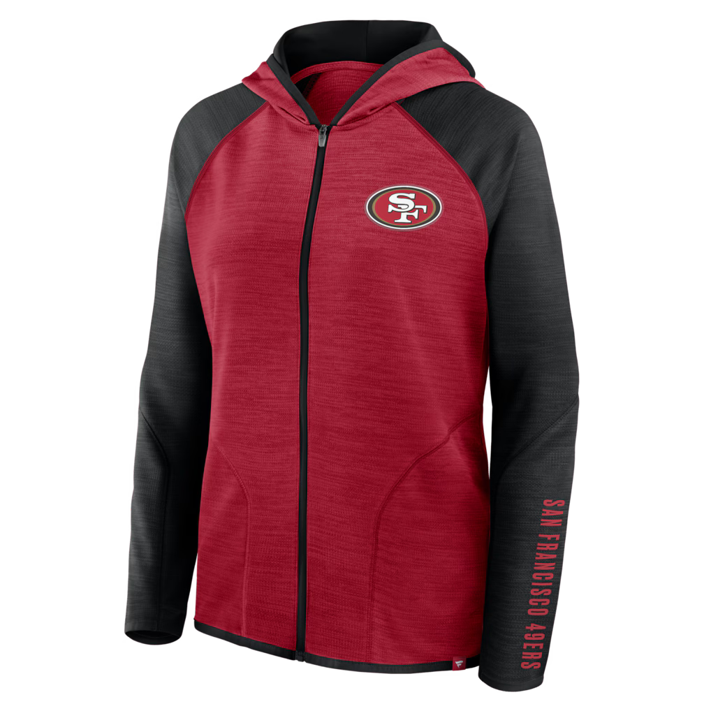 San Francisco 49ers Fanatics Women's Redzone End Around Pass Raglan Full-Zip Hoodie - Scarlet/Black