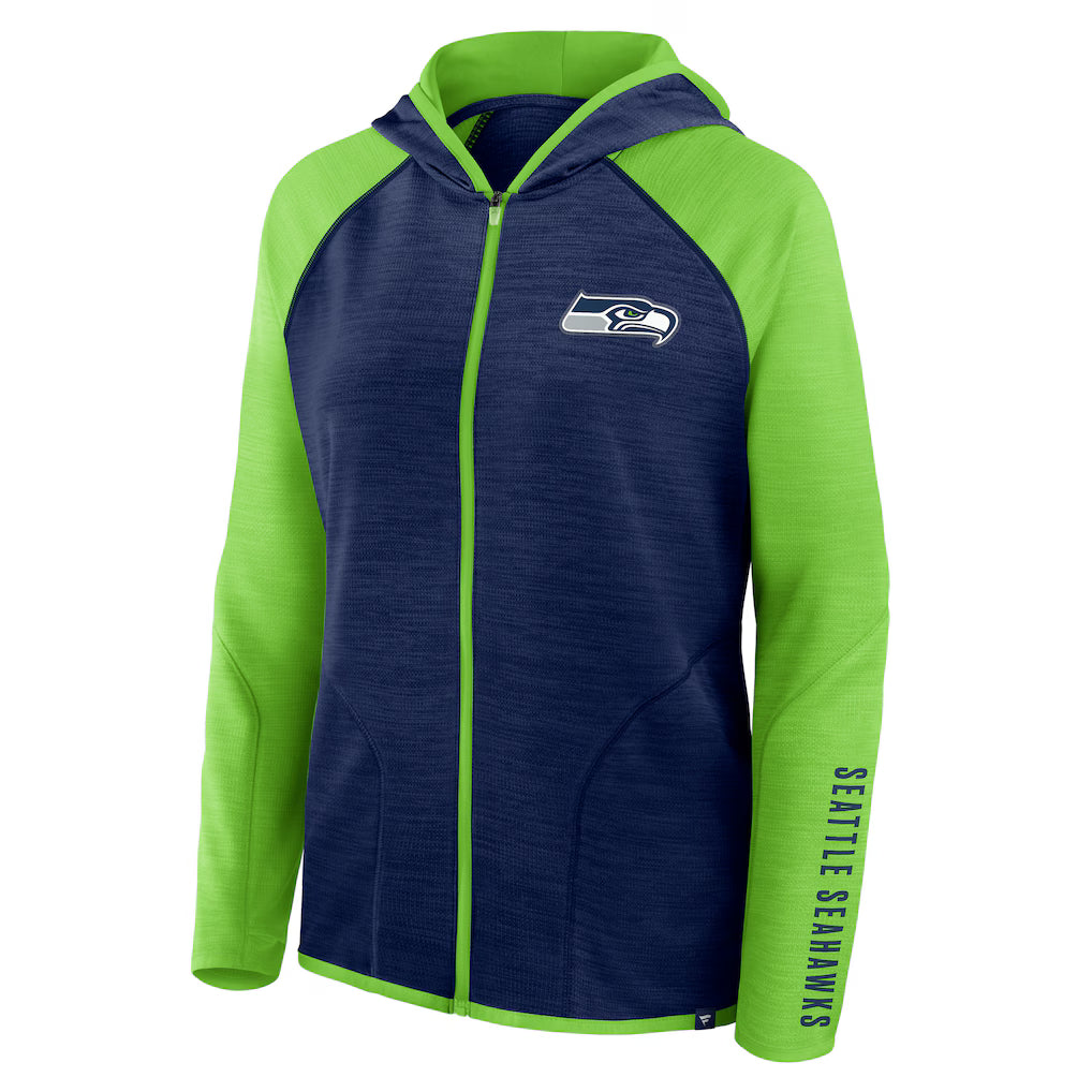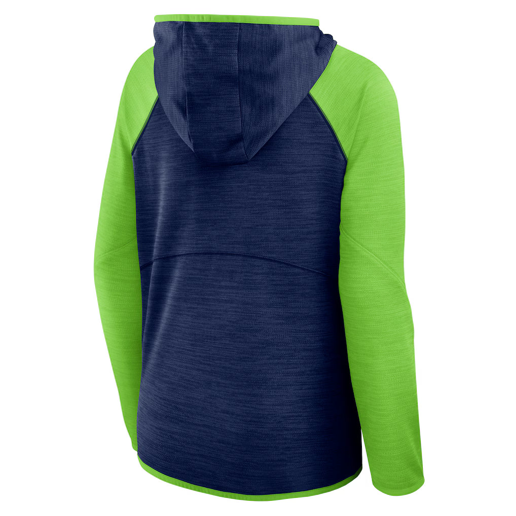 Seattle Seahawks Fanatics Women's Redzone End Around Pass Raglan Full-Zip Hoodie - Navy/Neon Green