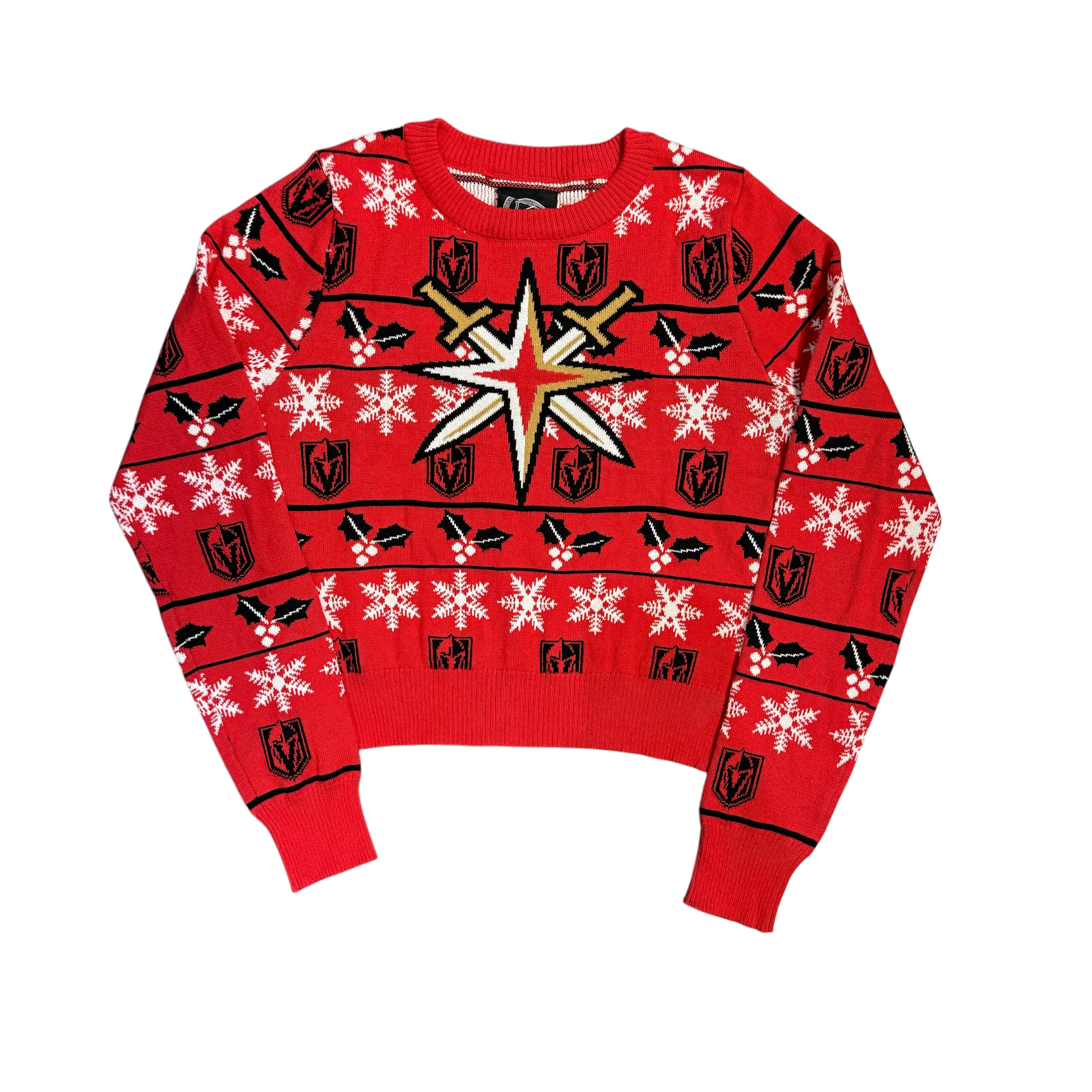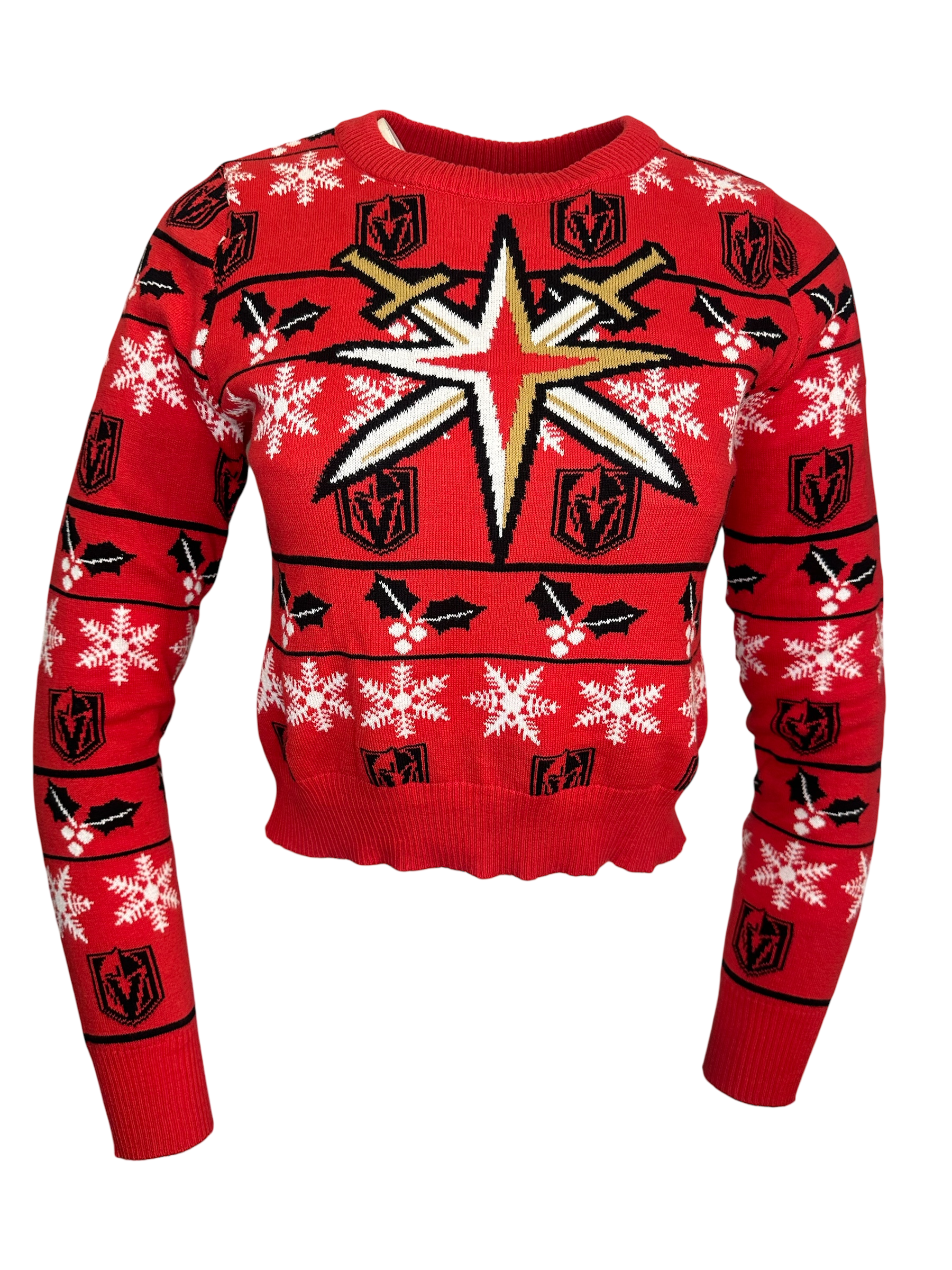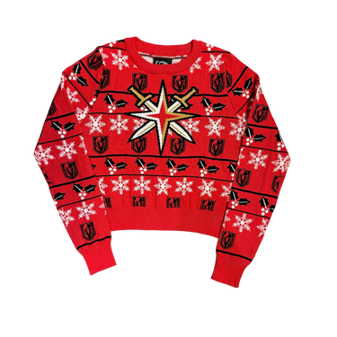 Vegas Golden Knights Retro Holiday Cropped Sweater Womens Red