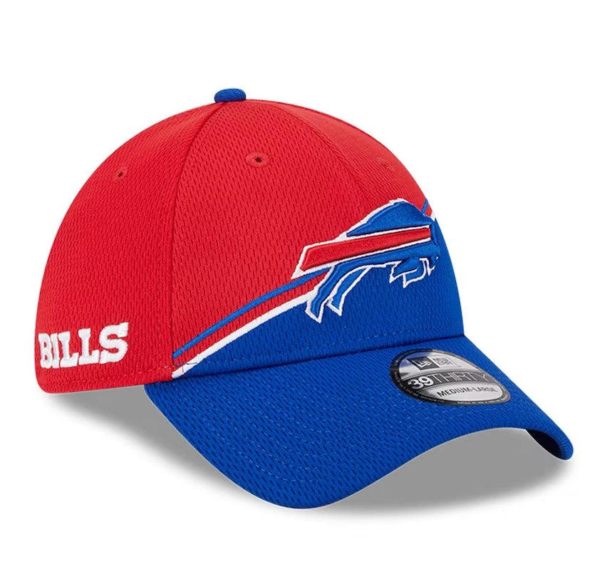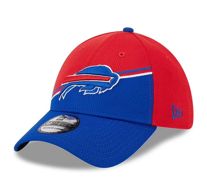 Gear up for the upcoming NFL season with this Buffalo Bills 2023 Sideline 39THIRTY Flex Hat from New Era. This hat displays bold team colors and embroidered Buffalo Bills graphics on the front panels. The official NFL shield is embroidered on the rear with the wordmark logo on the right side of the hat. You'll feel like an official member of the team when you match the players and coaches throughout the 2023 season.