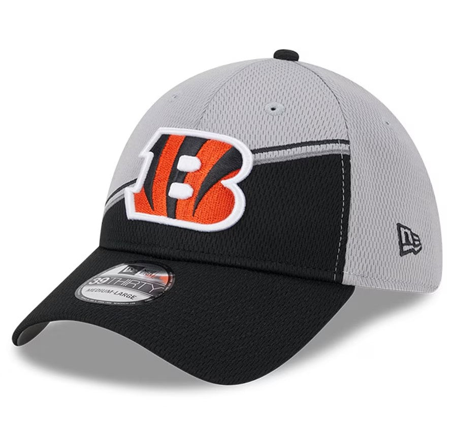 Gear up for the upcoming NFL season with this Cincinnati Bengals 2023 Sideline 39THIRTY Flex Hat from New Era. This hat displays neutral colors and embroidered Cincinnati Bengals graphics on the front panels. The official NFL shield is embroidered on the rear with the wordmark logo on the right side of the hat. You'll feel like an official member of the team when you match the players and coaches throughout the 2023 season.