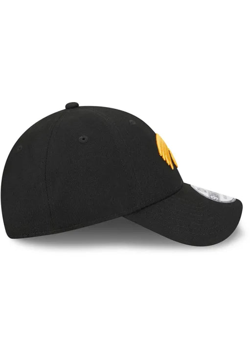 Low crown, structured with curved bill. Team logo embroidered on front with wordmark on the back. Velcro closure. Polyester blend.