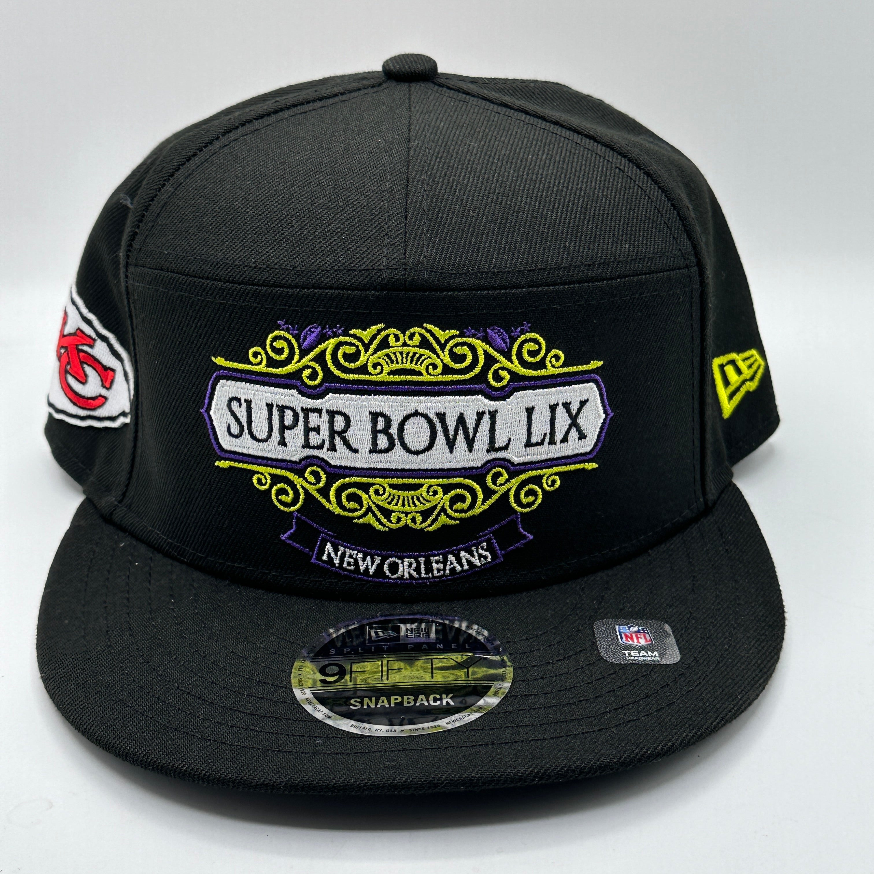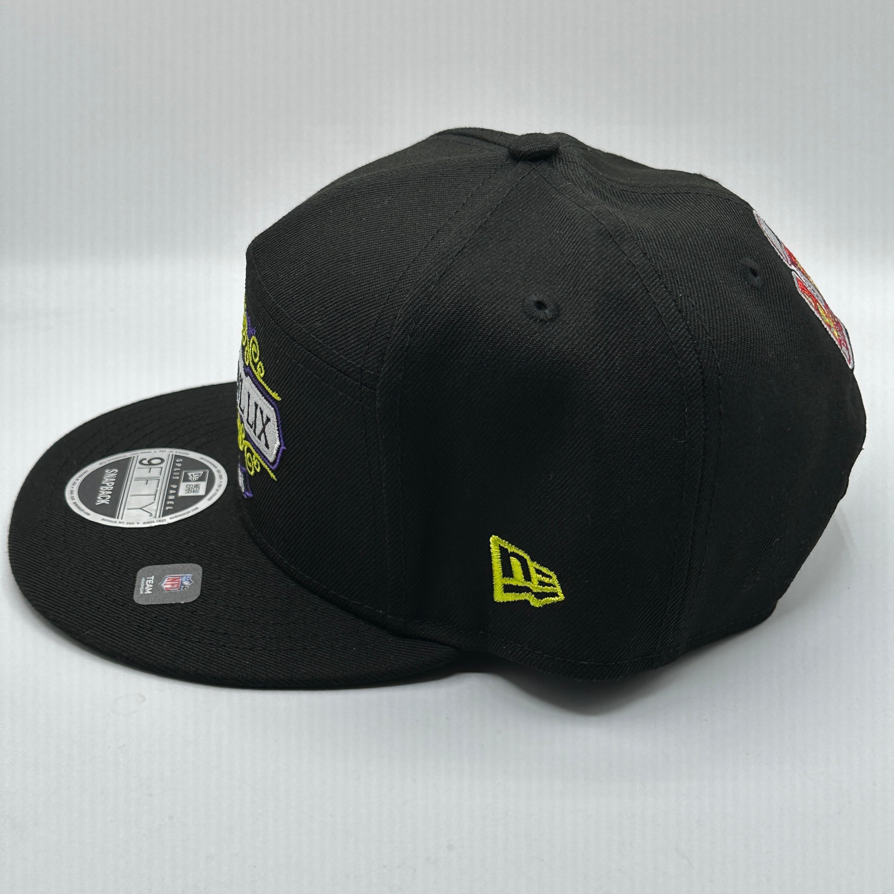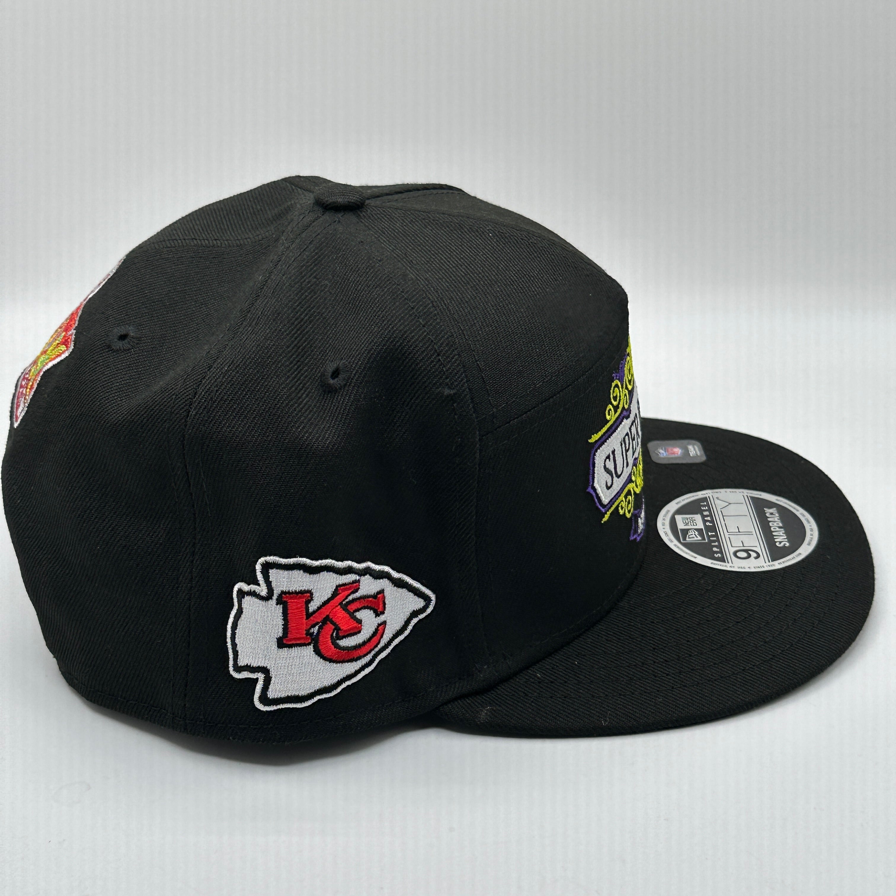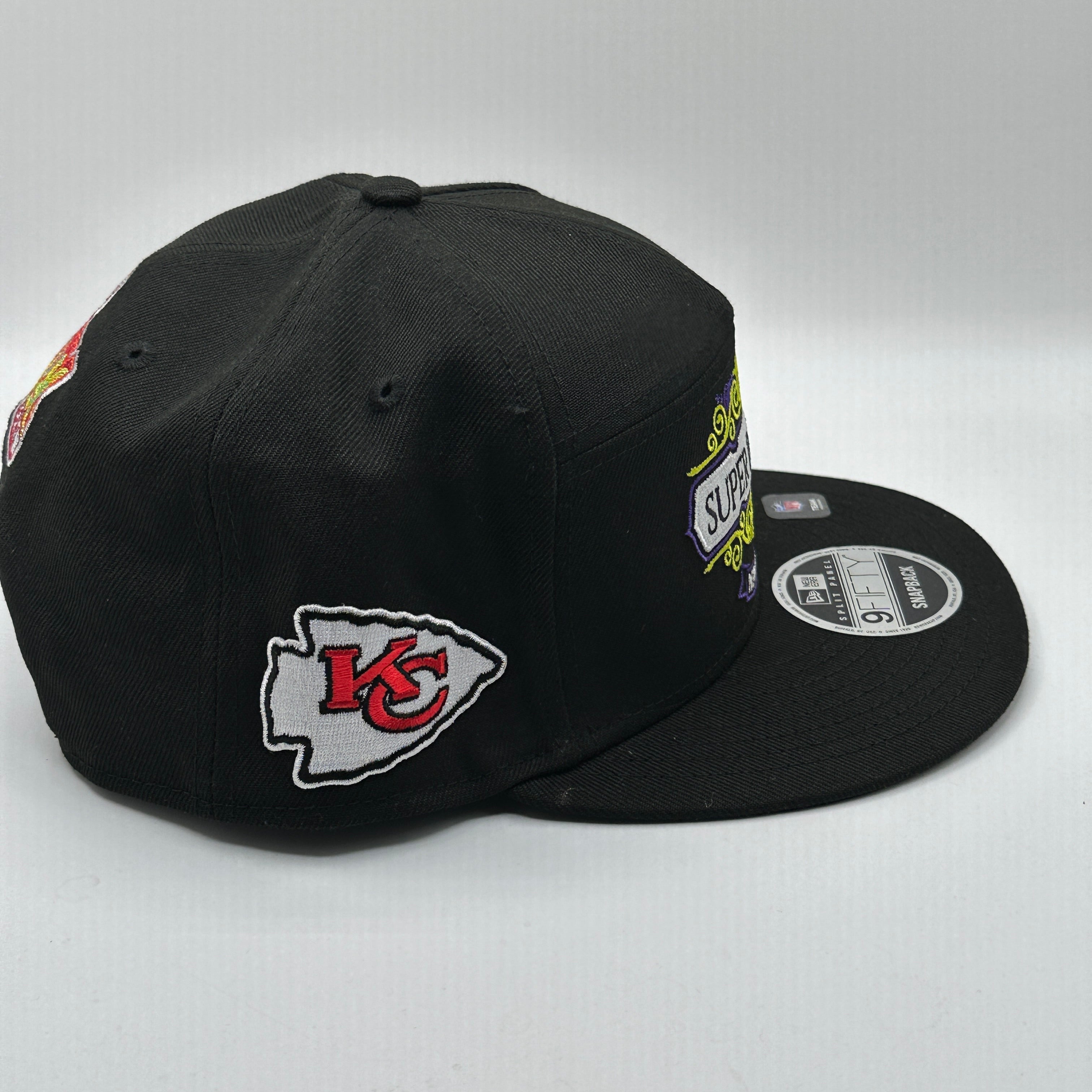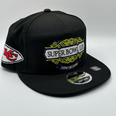 Kansas City Chiefs New Era Black Super Bowl LIX Tarmac Split Panel 9FIFTY Snapback Hat