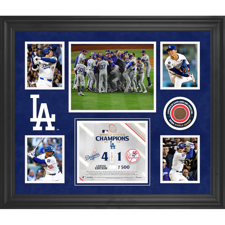 Los Angeles Dodgers Fanatics Authentic 2024 World Series Champions Framed 5-Photo Collage w/ Capsule of Game-Used Dirt