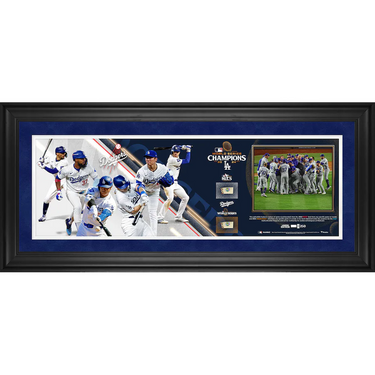 Los Angeles Dodgers Fanatics Authentic 2024 World Series Champions Framed 10" x 30" Collage with Pieces of Game-Used Baseballs