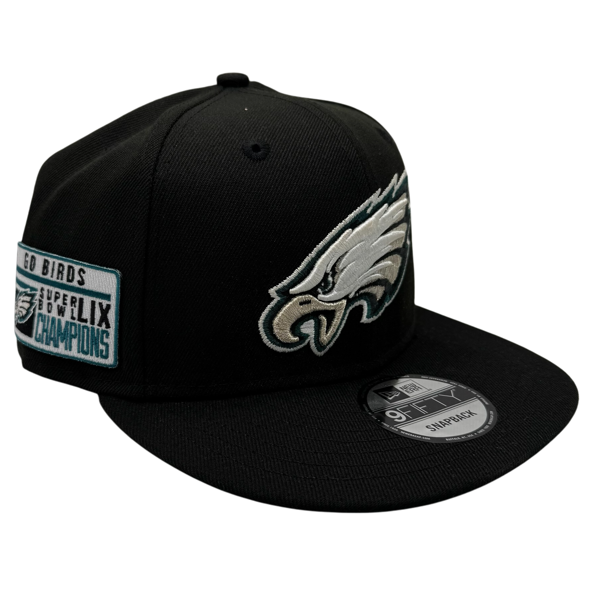 Philadelphia Eagles New Era Black Super Bowl LIX Champions Side Patch 9FIFTY Snapback Hat