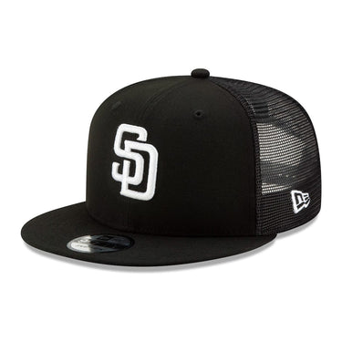 SAN DIEGO PADRES TRUCKER 9FIFTY SNAPBACK HAT BLACK WHITE