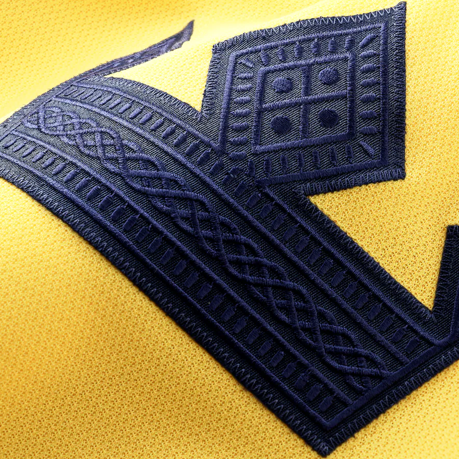 • Sewn-down tackle twill with embroidered crest and shoulder patches
